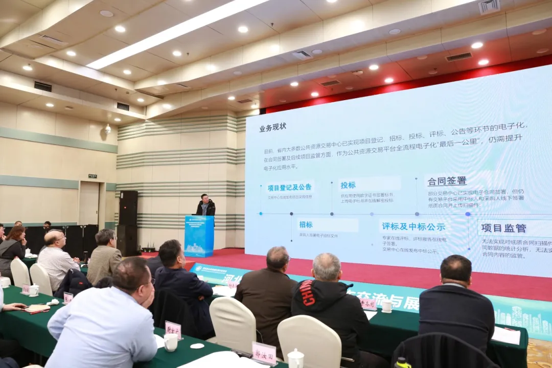 為了深入貫徹黨的二十大精神,認真落實省委、省政府關于推動公共資源交易改革的指示要求,推進招投標領域“雙盲”評審工作,河北省公共資源交易行業協會第二屆理事會五次會議暨全省公共資源交易工作交流與展望大會于2024年1月26日在石家莊圓滿召開,省數據和政務服務局、省民政廳社會組織管理局有關領導到會并致辭,河北省電子認證有限公司(簡稱:河北CA)受邀出席到會并做大會發言。